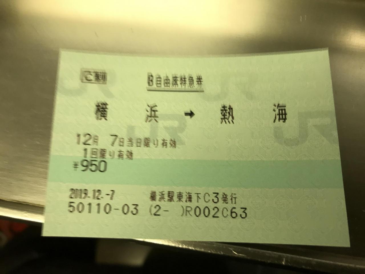 横浜から熱海までの自由席の特急料金は950円。