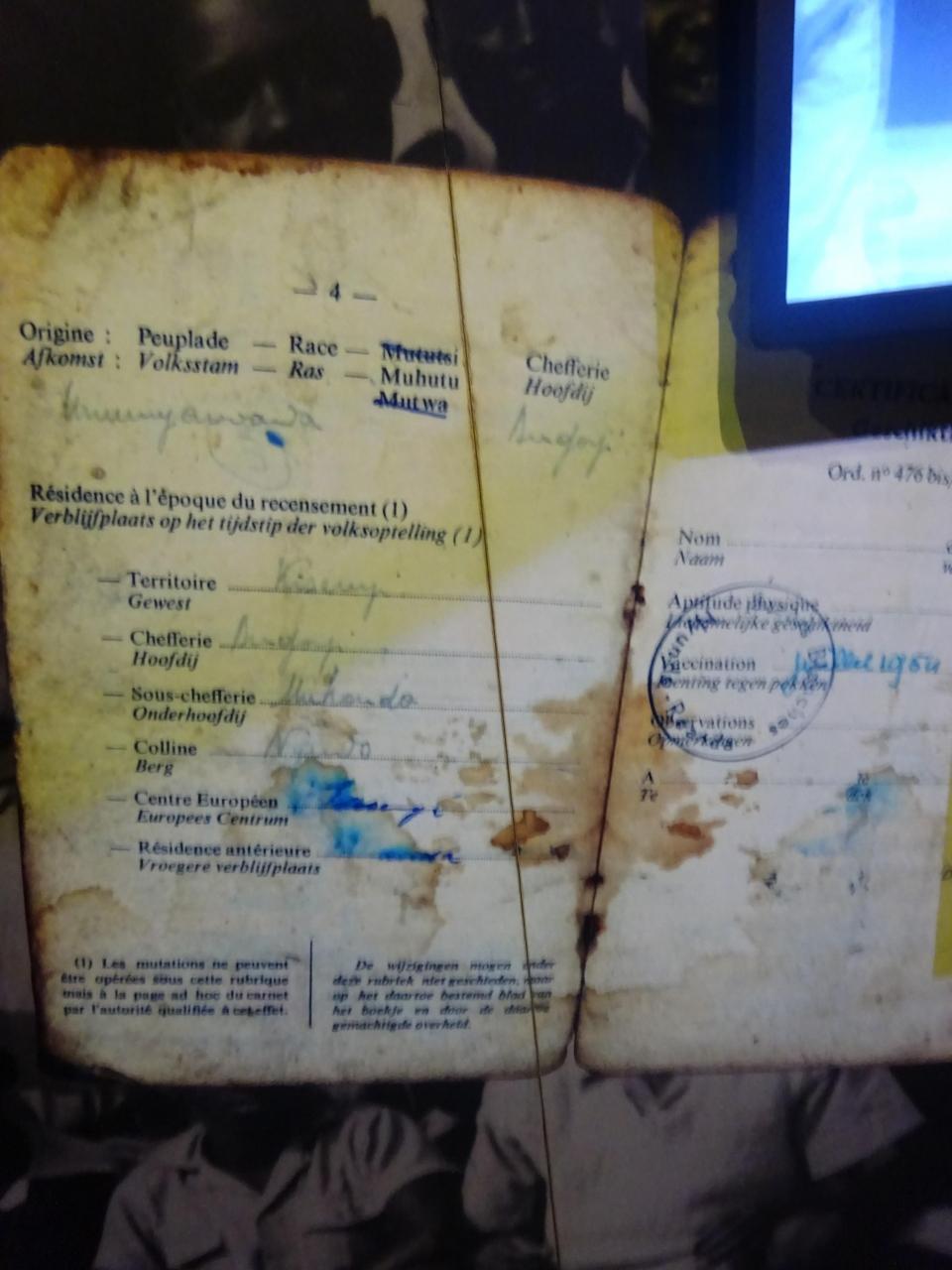 ヨーロッパが進出する以前はフツ族(農耕民族・多数民族)とツチ族(遊牧民族・少数民族・背が高く、鼻筋が通っていルる。)は共存してルワンダ王国を形成し、2つの民族の意識は曖昧でした。19C(1899年)にドイツがここを占領し、王国の統治を利用して間接統治をしていた。第一次世界大戦後、ドイツよりベルギーに統治が移り、統治の手段として、ツチ族を優遇したため、2つの民族に有意差ができ対立が顕在化しました。1930年ID発行。1954年、フツ族の反乱がありました。