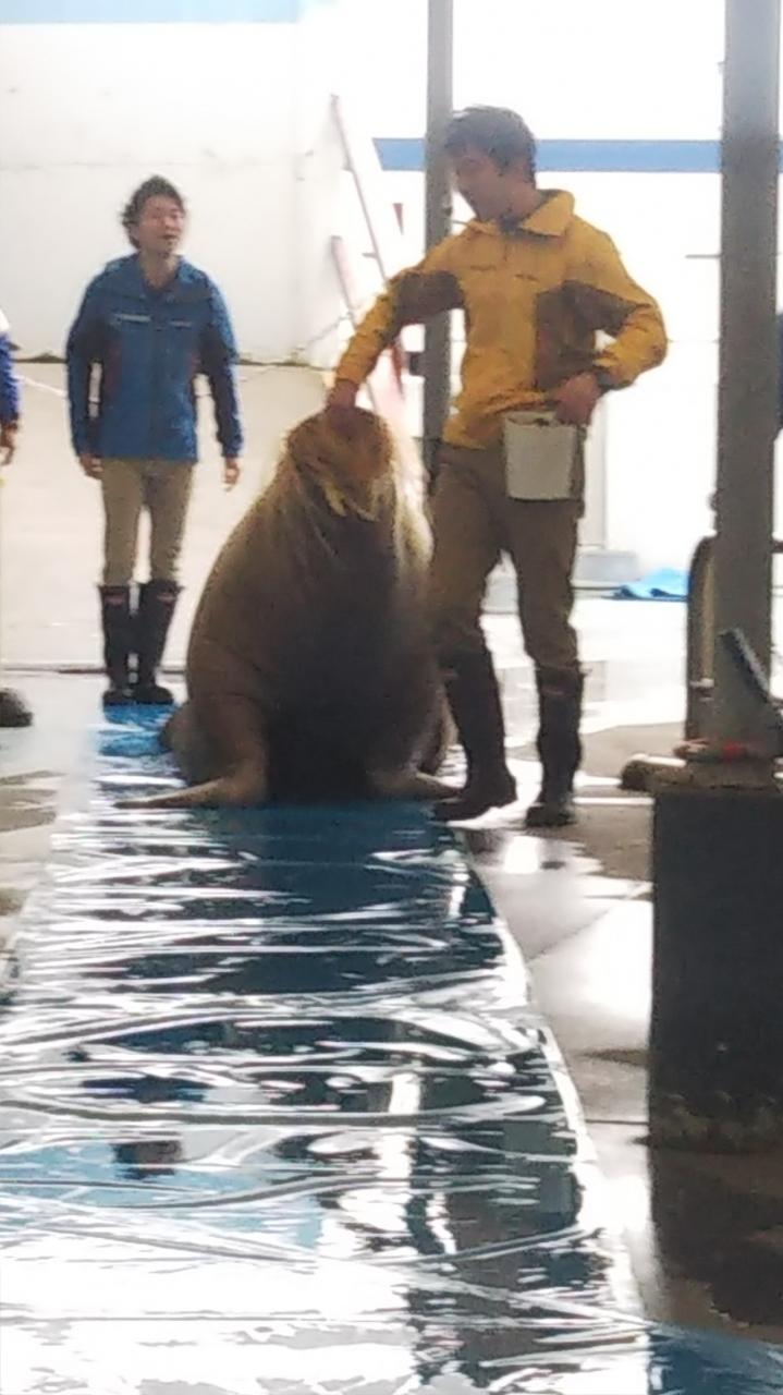 体重が1t近い雄のセイウチが、観客のすぐ近くを練り歩きます。