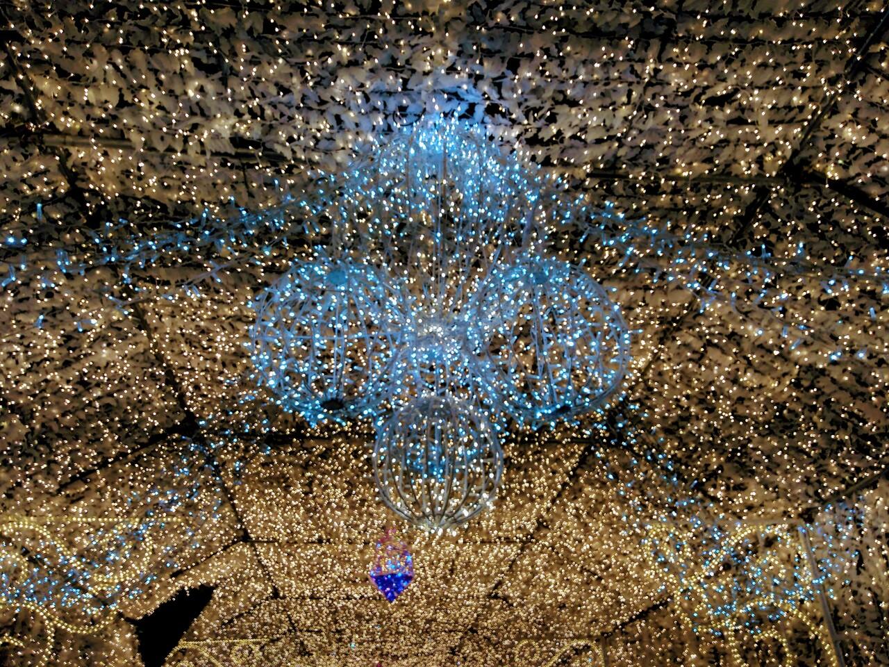 光のトンネル。白い羽根のついたLEDで埋め尽くされていて、とっても幻想的。