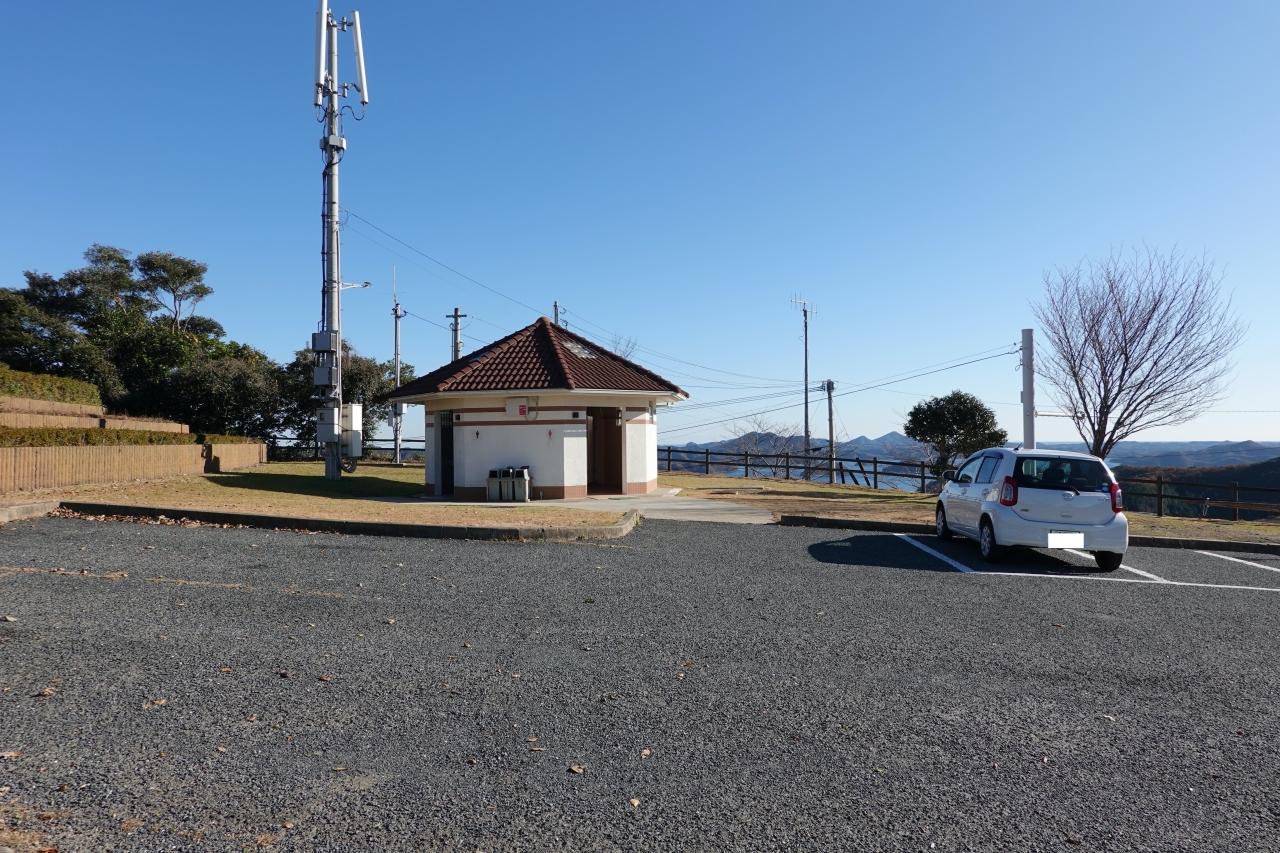 12:34 海岸沿いに西泊まで進み、「権現山展望台」の看板で右折して、基本、車幅しかない山道を登ると、権現山駐車場: