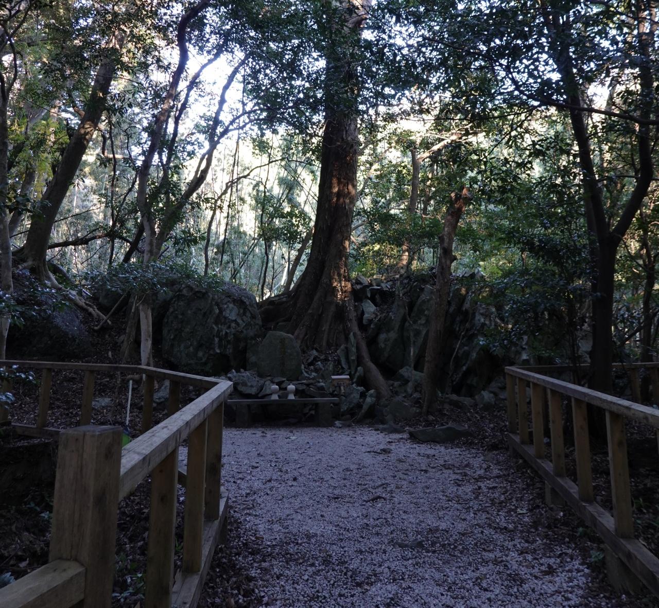 15:13 豊玉姫の墳墓とされる大木が生える磐座: