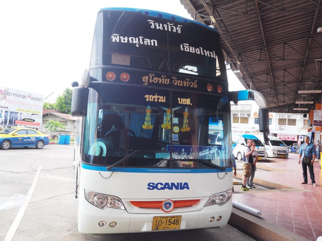 スコータイ建学は1日あれば十分。翌日、遺跡公園商店街のバス会社から12:10発チェンマイ行きバス乗車。15:50ランパーン到着。169バーツ(約600円)。