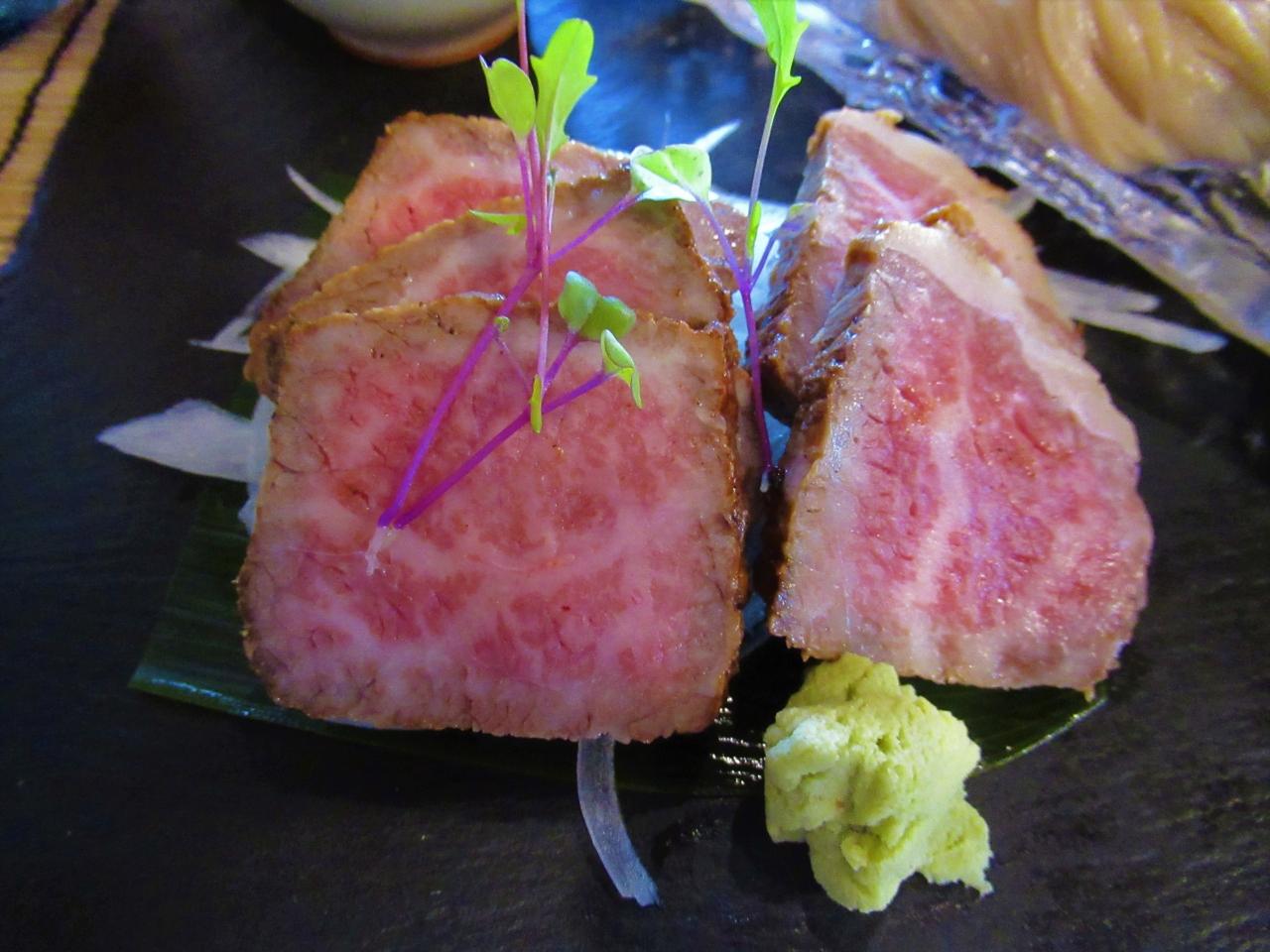 和牛のたたきも程良く添えられていてさっぱりしているのにボリュームも有り、味も大満足です。