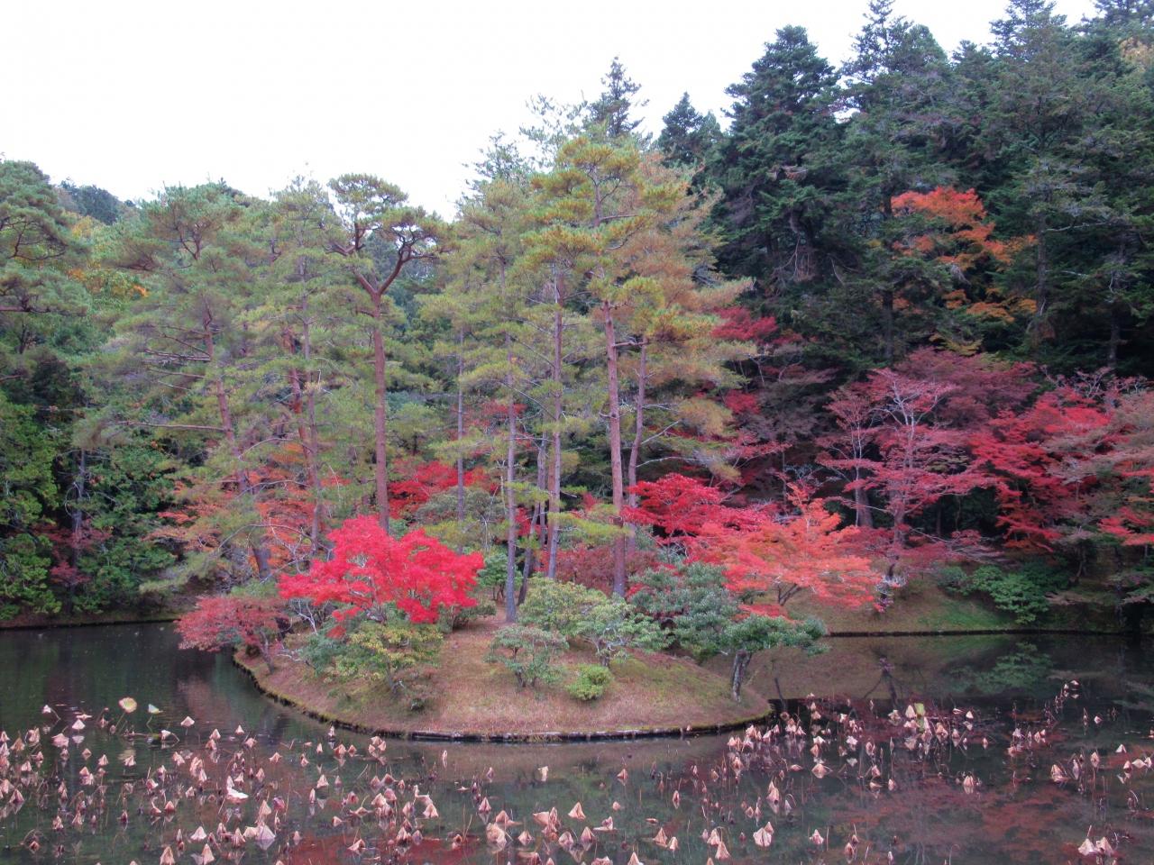 中島の頂上に見えて来る茶室「窮邃亭(きゅうすいてい)」。