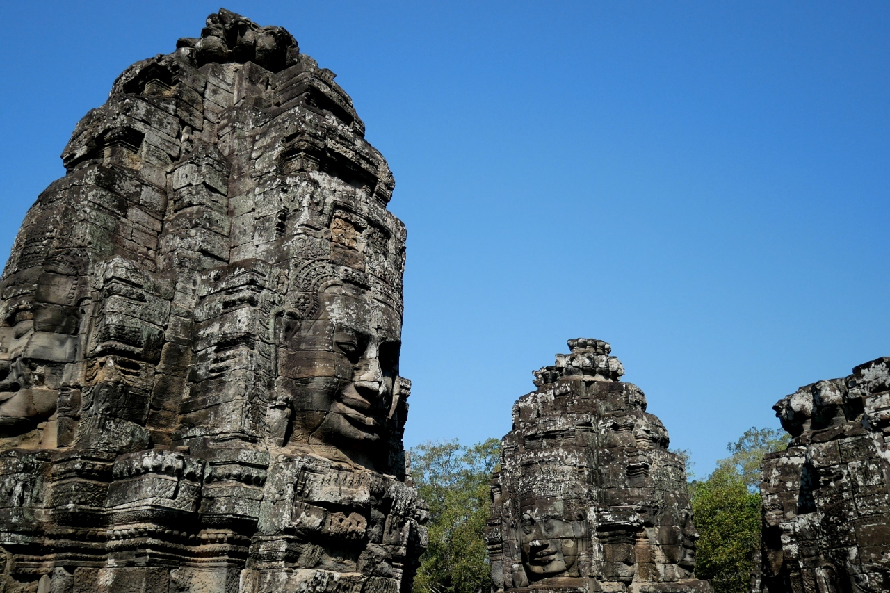■ 彫刻の美しいの四面塔は、クメールの微笑と呼ばれている。