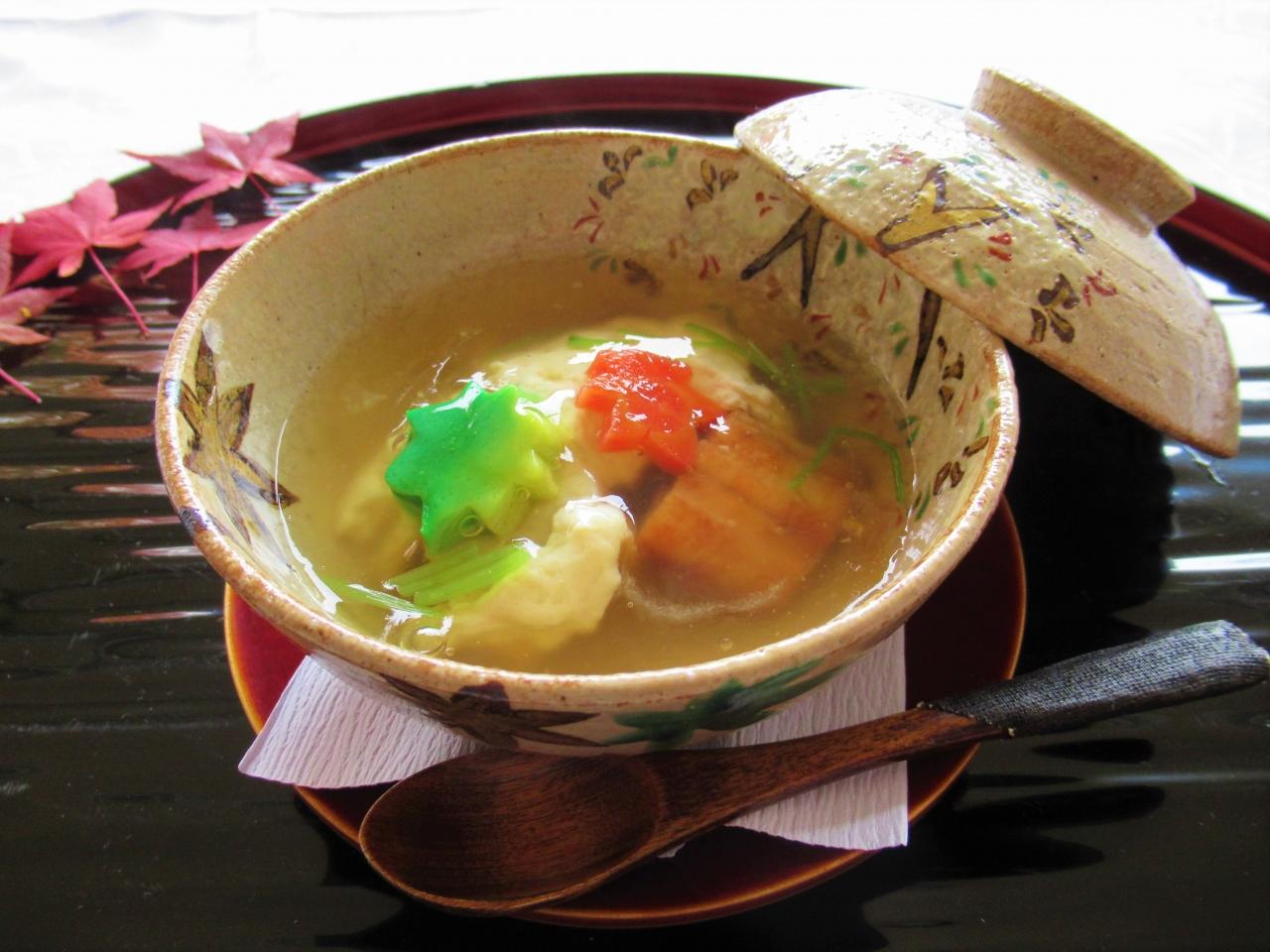 湯葉 松茸 紅葉人参 蟹真薯。