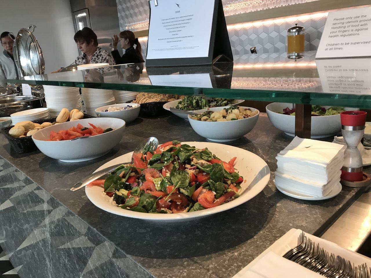 こちらは香港のカンタスラウンジ、サラダ、パスタ、ヨーグルト、ヤクルト(これが大きい)、、彩りが素敵です。