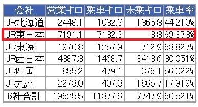 こないだまで100%だった、JR東日本が案の定、99.8%になっとる。未乗区間は8.8km。まさしくこの区間である。