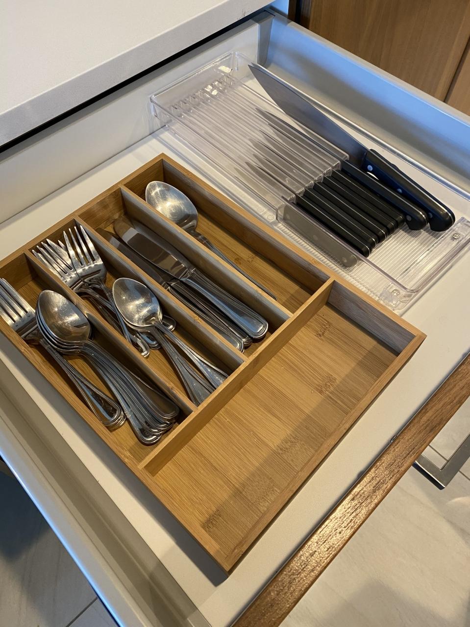 引き出しにナイフ、スプーン、フォークいっぱい。
