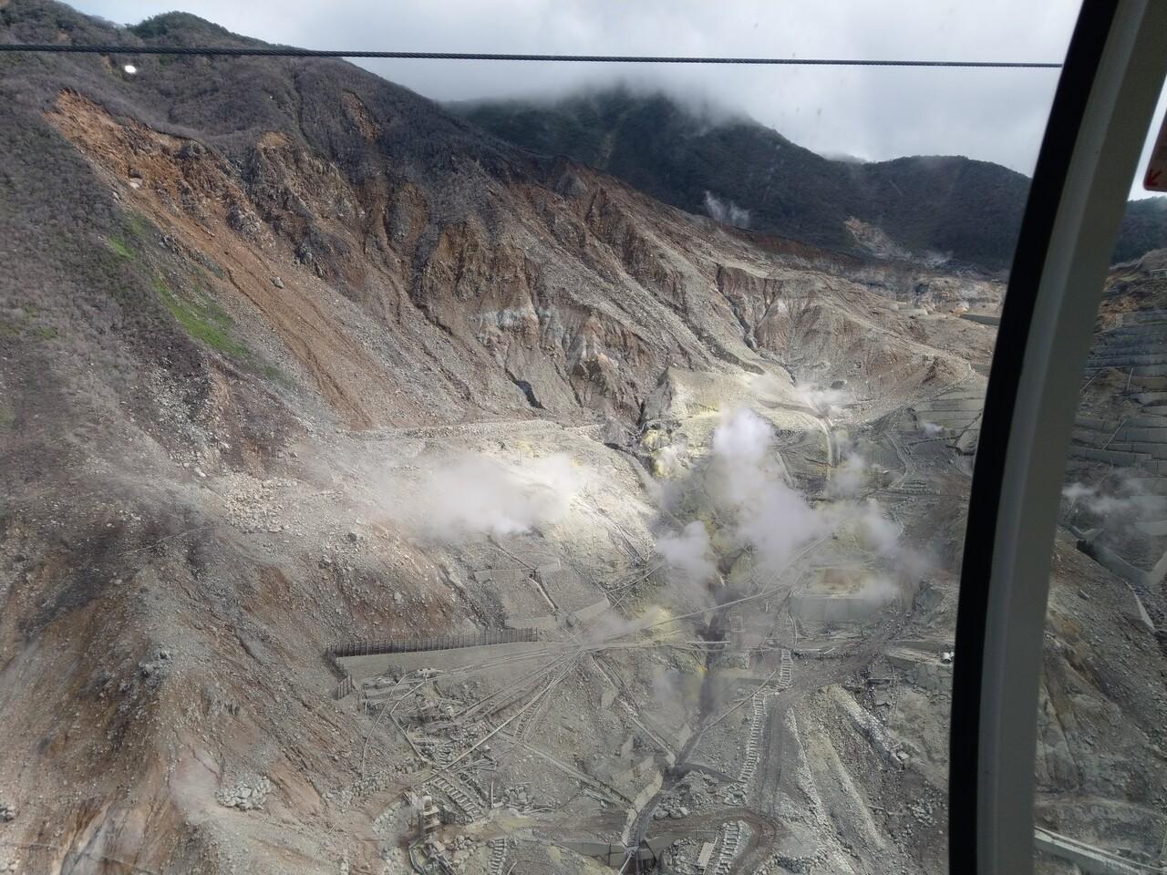 大涌谷を目指します。ロープウェイを出発してすぐの山の風景も壮大だなと思っていましたが