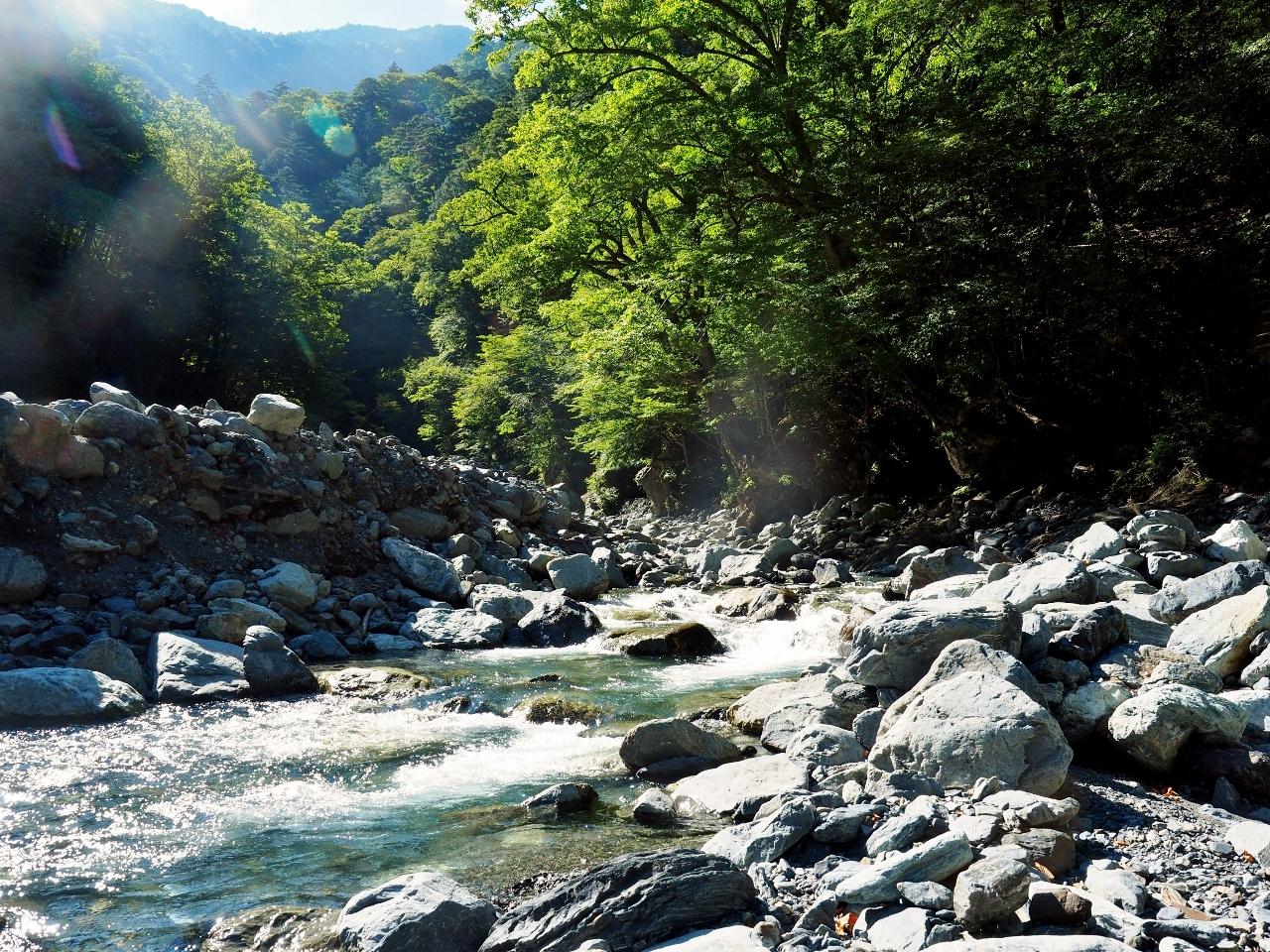 さ、渡渉、サンダルで沢歩くの気持ちイイっす。