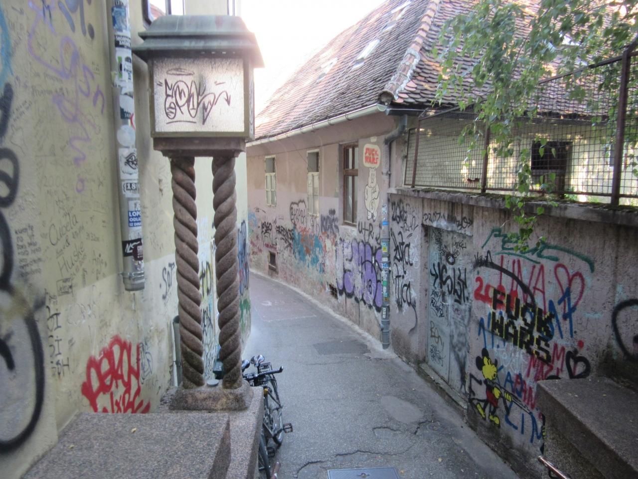 この細い道が「グラフィティ路地」(私が命名)
