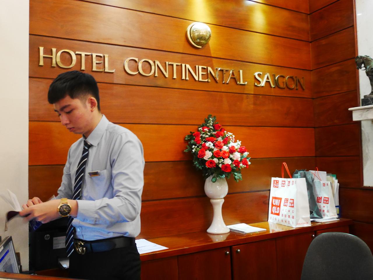 コンチネンタルホテルのレセプションのユニクロ袋が気になりますがそれ以上にスリッパが良い!お持ち帰りしたくなりました。