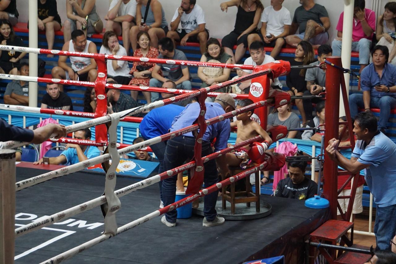 ちょっと背格好が違いすぎる気もしますが、おそらくタイ人対ヨーロッパの選手。