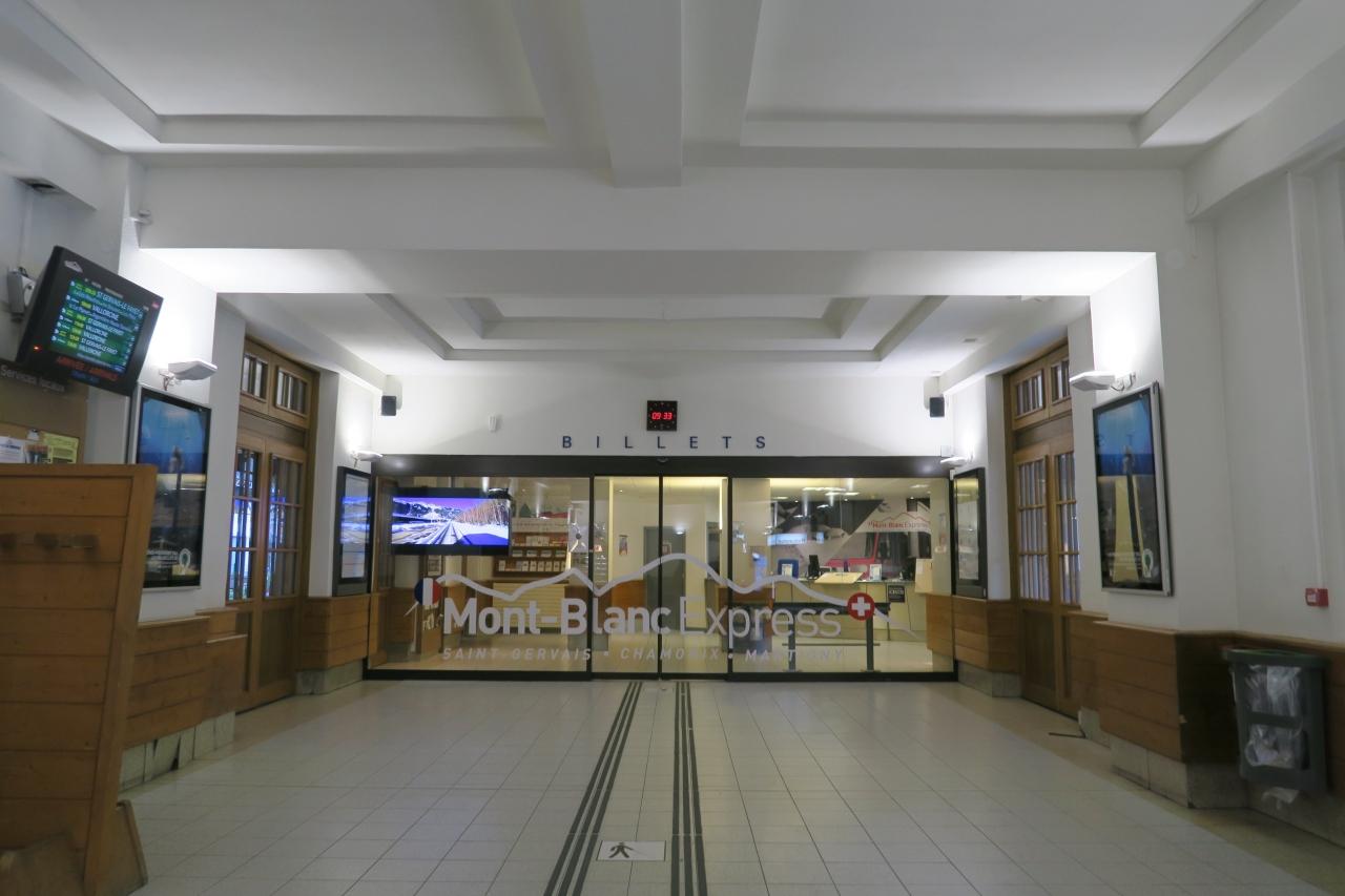 構内の案内画面です。電車は運行していないので、代行バスが表示されています。スイス方向の国境駅ヴァロルシーヌ行きと反対方向の終点駅サンジュルヴェ行きのバスが運行されているようです。ちなみにサンジュルヴェ駅は、狭軌の登山鉄道の終着駅です。