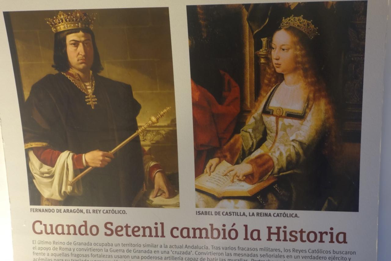 フェルナンドとイサベル両国王とこの村のつながりを描いたパネル。
