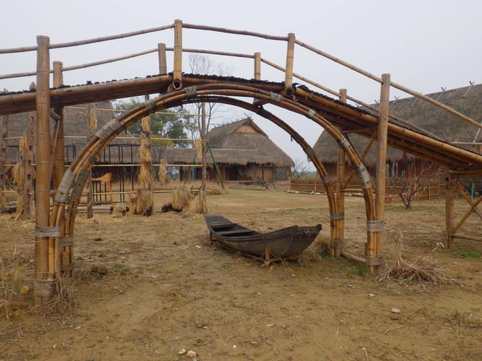 k155路と348路のバスを乗り継ぎ、良渚遺址公園南バス停まで1時間半ほどでした。窓口で料金を払って入場しました。チケットは80元(観光車代20元込み)でした。入るとすぐにカートに乗せられました。初めに降ろされたのは土を盛った門の前でした。ただの丘ですが、とりあえず登ってみました。そこから水門の前を通って、南の城壁発掘点に行きました。屋根で覆われている中では遺跡が発掘されていて、ここが一番見ごたえがありました。そして、昔の家風になっている覗いてみると、そこは、ちょっとした博物館や展示場のようになっていました。続いてカートが着いたのは、当時の人々の暮らしぶりを説明したり体験できるエリアでした。角で武器を作ったり、石で武器を作ったり、漆塗りをする様子などが展示されていたり、ショップで有料体験できたりしていました。次に本丸の莫角山でバスを降ろされました。本丸なので期待していましたが、さすがに紀元前のものなので地形と僅かな遺構が残っているだけでした。丘の上には良渚の都市の模型があったので、それを見ながら想像してみました。その後、展望丘のある村の復元跡にも行きましたが、丘には登れず、村も開店休業状態でした。続いて反山王陵でカートを降ろされました。ここでもいくつかの遺構と地層などをみることができました。ぐるっと回って、西の城壁遺跡で石を並べて作った通路の跡などを見て大まかな見学を終えました。大した距離を移動するわけではないのですが、カートに乗ったり降りたりを繰り返して見学するので、全部見るのに4時間くらいかかってしまいました。全部カートに乗らなくても、歩いて見どころだけ回ればもっと効率よく見られたかもしれません。