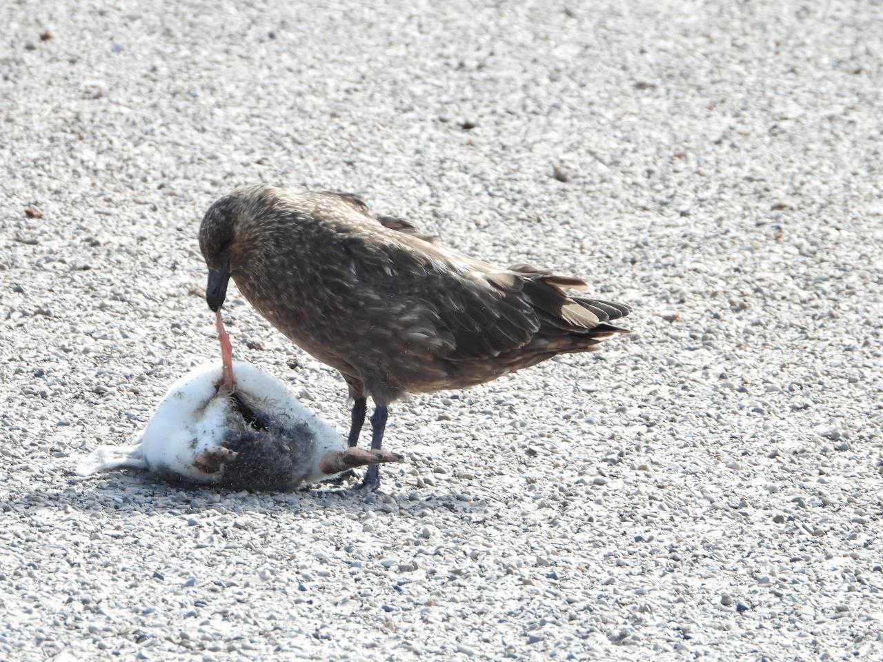 トウゾクカモメにジェンツー雛が食べられています。