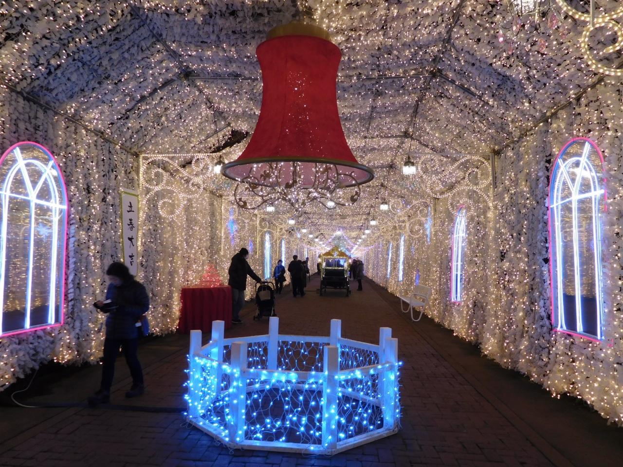 光のトンネルから外れるとホテルや温泉施設もありました。