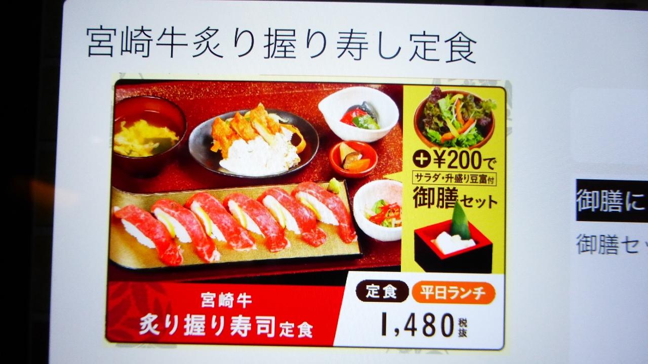 これ(宮崎牛の炙り握り寿司定食)を食べにやって来ました。