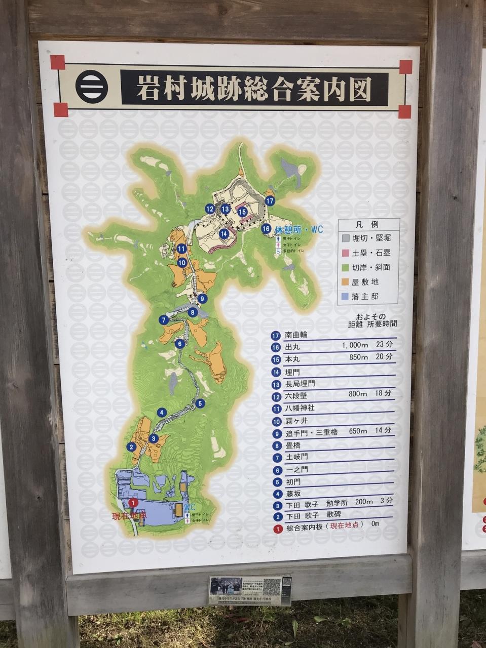 藩主邸跡にある岩村城跡総合案内図。