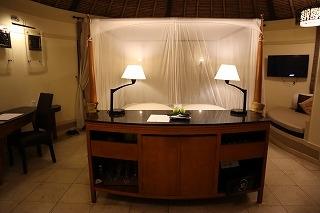 ベッドは天蓋付き。でもリゾートに蚊はいないらしい。虫もほとんど気になりませんでした。