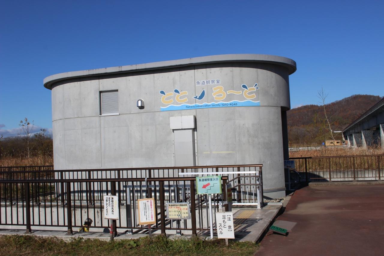 十勝川温泉を出発し、まず向かったのは「魚道観察室ととろーど」。幕別町にあり、千代田新水路の前にある魚道を見ることができます。