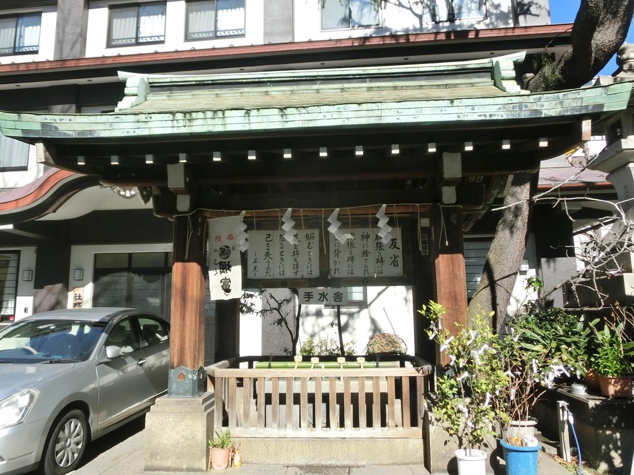 左下の天水桶は天保12年、1841年に当時の坂本町(今の兜町)の住民により奉納されたもの。 -