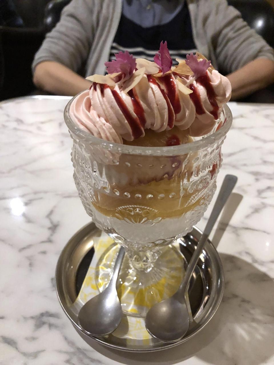 奥様は、フリーダのピンクピーチメルバサンデー。