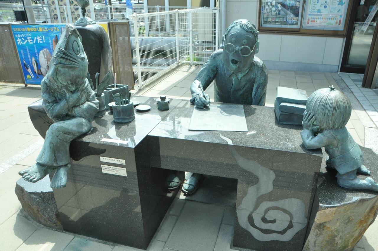 駅前には「水木しげる先生 執筆中」のモニュメント