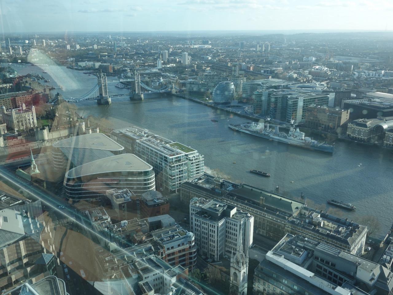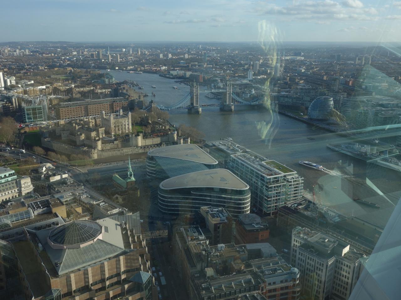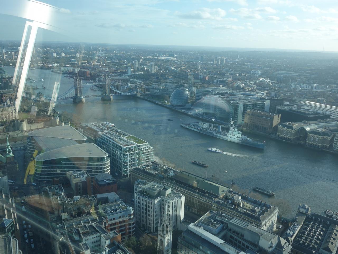(難を言うと,テームズ川が南側なので,逆光で,写真写りがイマイチ。そして,ガラス越しなので,ガラスの反射で,これもイマイチ。まあ,贅沢はいえません。)