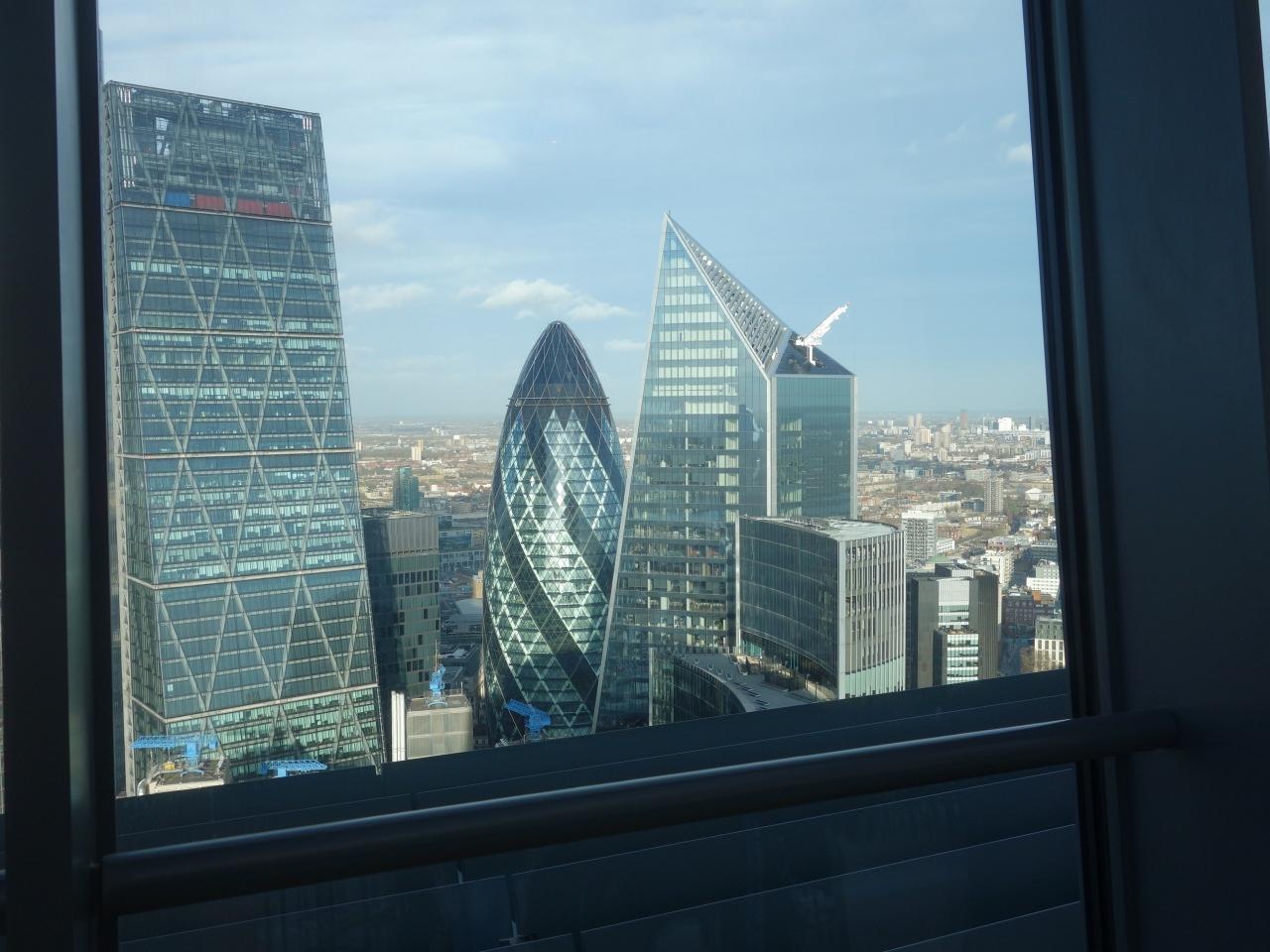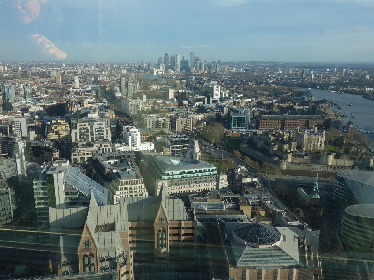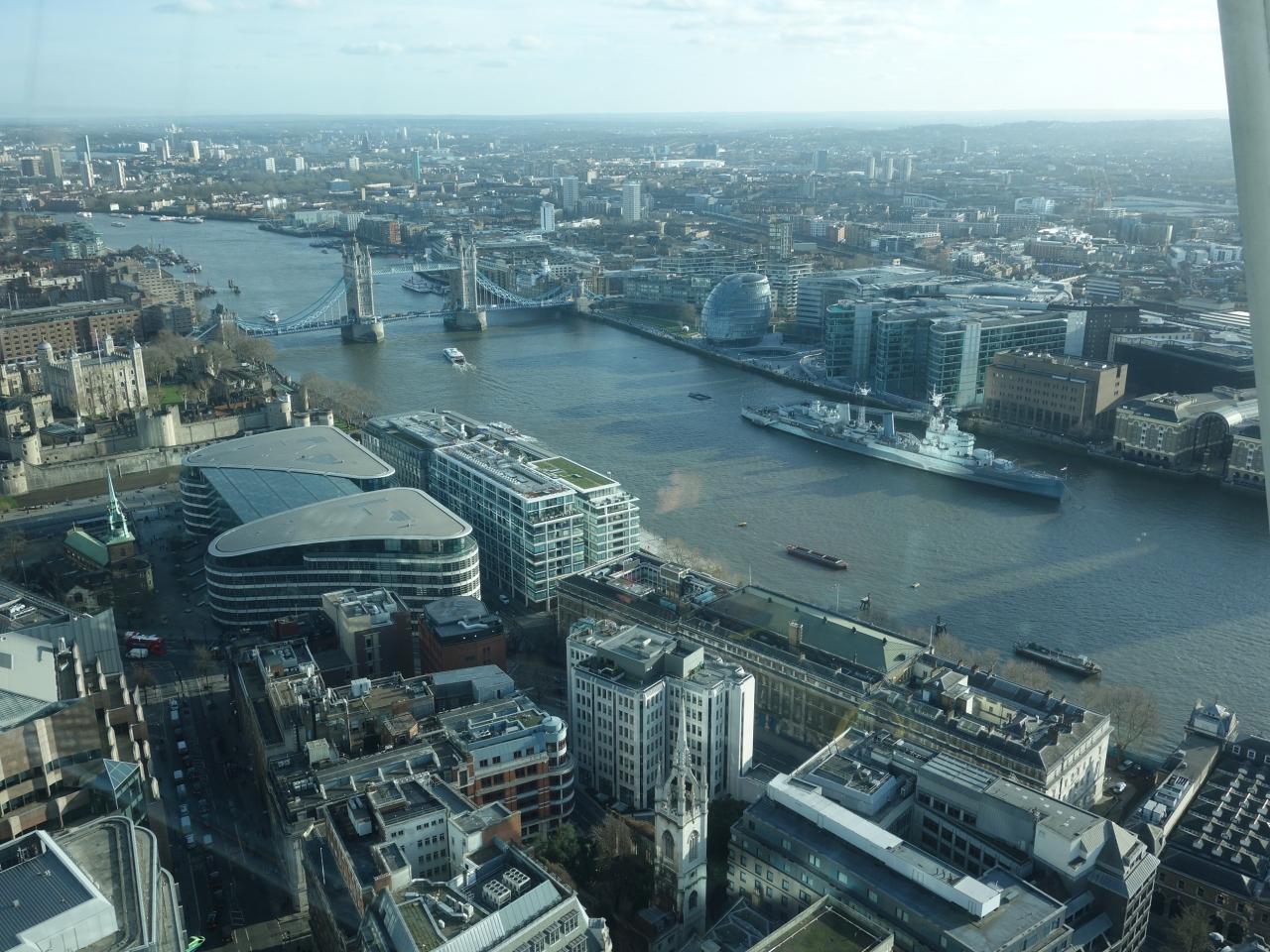 (難を言うと,テームズ川が南側なので,逆光で,写真写りがイマイチ。そして,ガラス越しなので,ガラスの反射で,これもイマイチ。まあ,贅沢はいえません。)