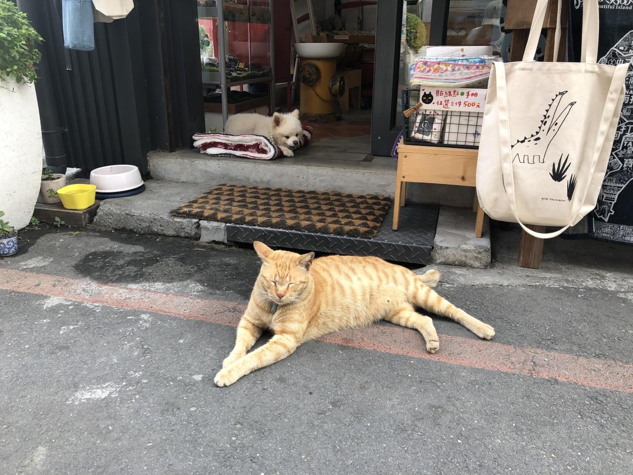 ふと通りかかったカバン屋さんの店先に猫ちゃんとワンちゃんが。