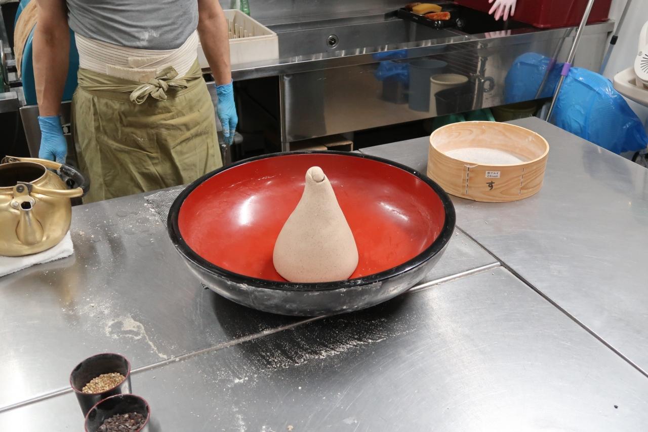 蕎麦の完成。ガラス越しに見た事はありましたが、こんなに間近で蕎麦粉の香りを感じながら見たのは初めて。いい経験になりました。