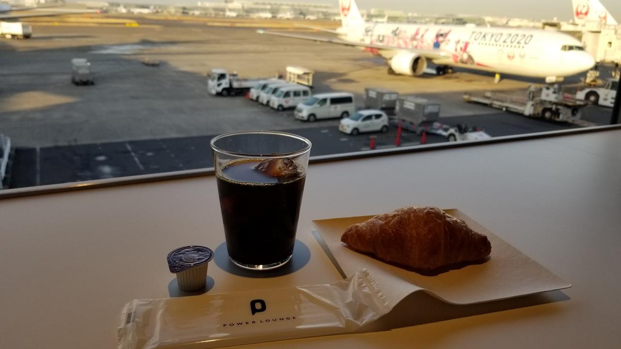 保安検査場はスムーズでしたが、パワーラウンジはこんな感じで盛況でした。反対側の1人ソファや飛行機が見える窓際の席も8割程度埋まってました。これには少しビックリしました。