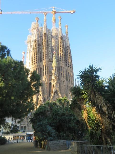 サクラダファミリア(聖家族教会)をガウディ広場・公園内から見ています