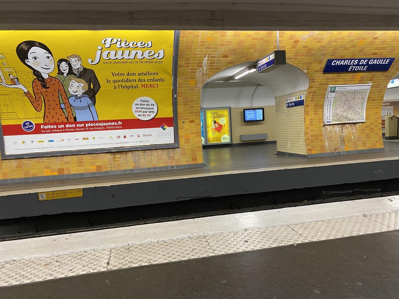シャルル・ド・ゴール=エトワール駅(Charles de Gaulle - Étoile)のホーム。