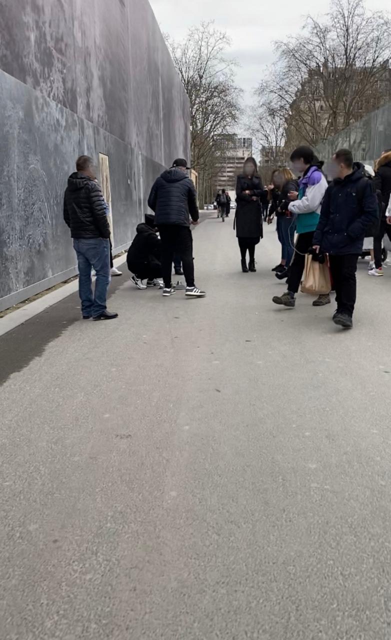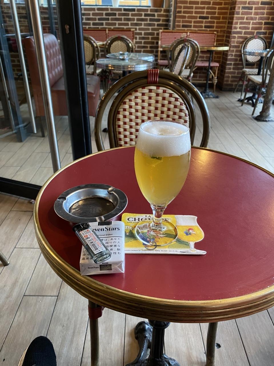 (※煙草の火消し付きのゴミ箱のベンチに座りながら吸ってます。携帯灰皿も常に持ち歩いてます。パリでは煙草のポイ捨ては罰金になります)