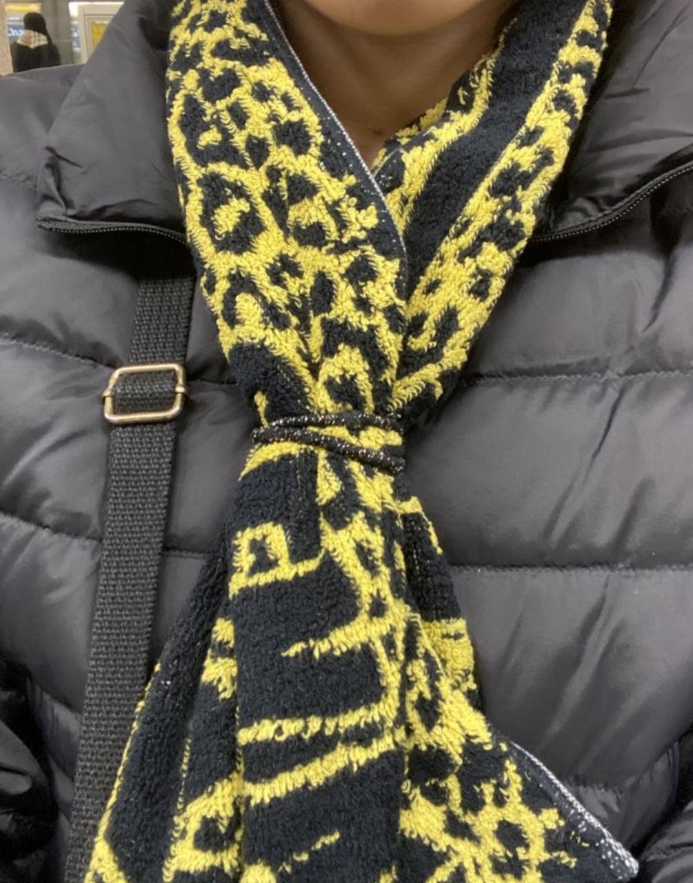 マフラータオルを文字通りマフラーとして使い、