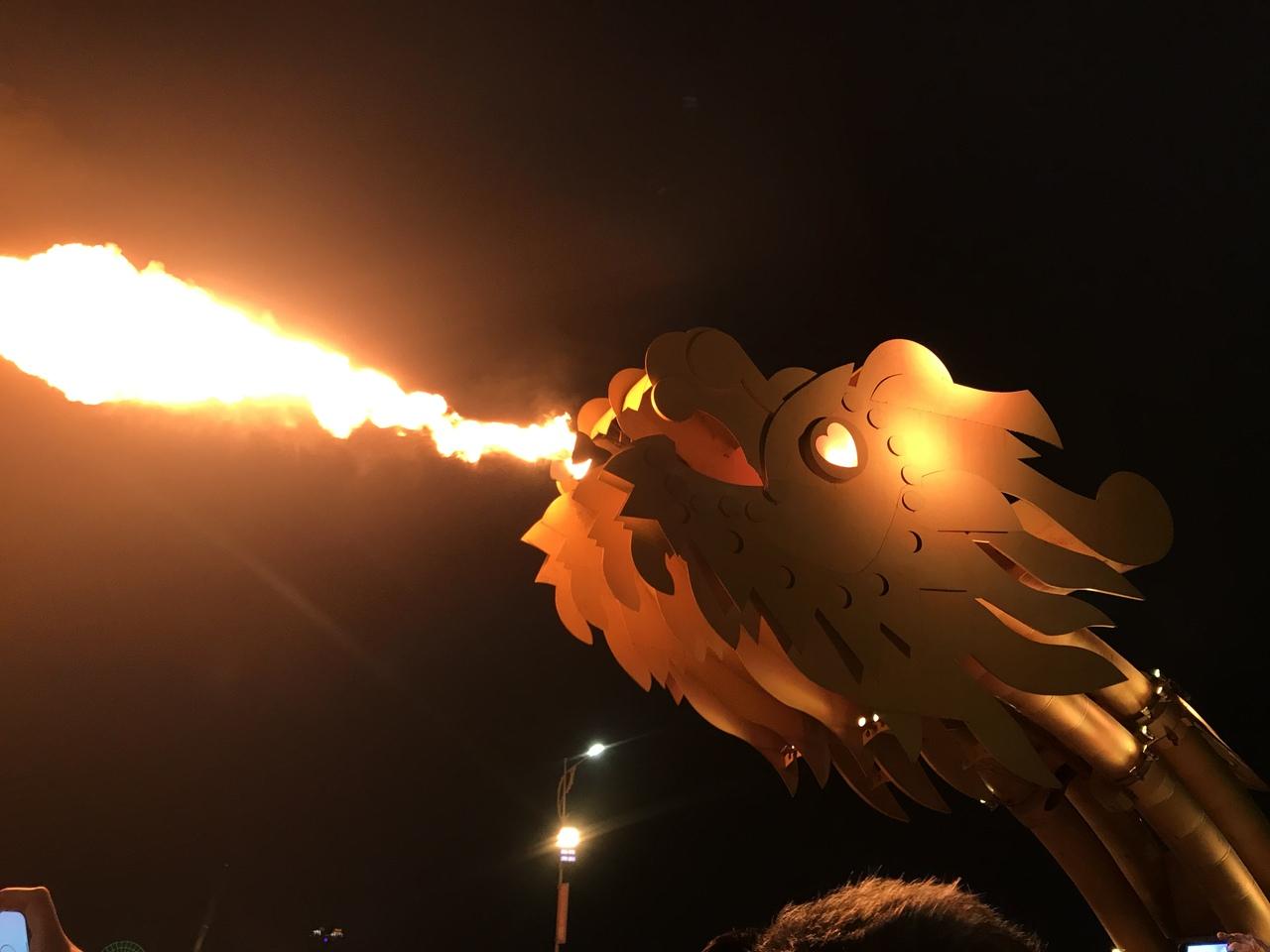 今日は日曜日。ドラゴンブリッジの火と水のショーが開催されます。土日にしかやってないみたい。