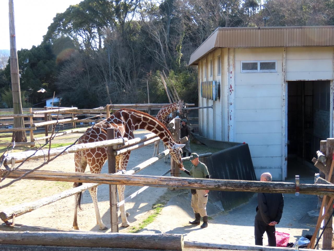 帰りにキリン舎の横を通るとトレーニングが行われていました。
