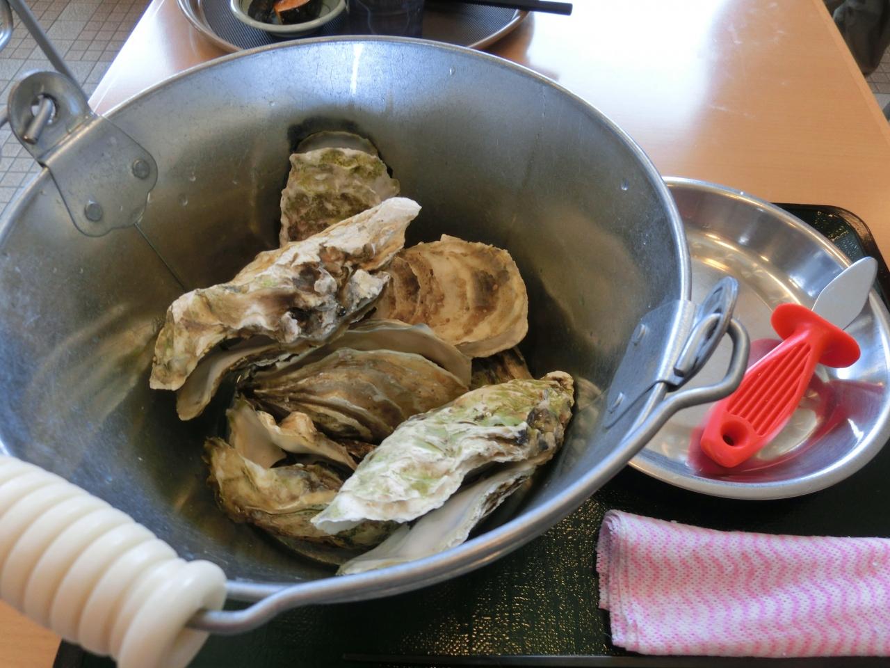 遅めの昼食です。蒸し牡蠣と