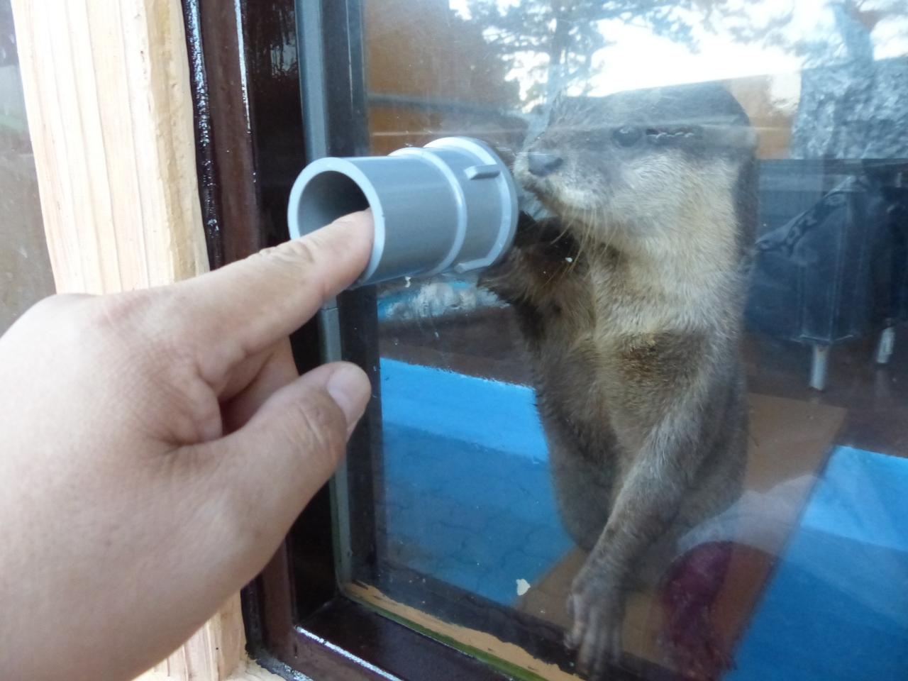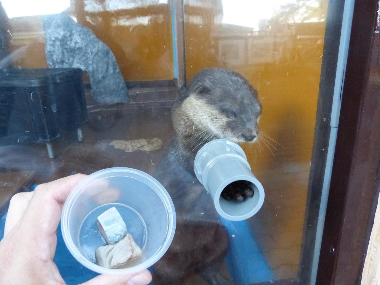 15時になり、コツメカワウソちゃんとの握手会&エサやりの時間になりました。