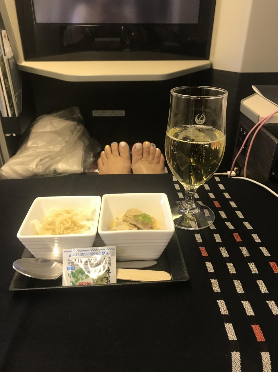 そして優先搭乗。ウエルカムドリンクは昨年のANA同様、プラカップです。どんな入れ物でもシャンパンは美味しいです。