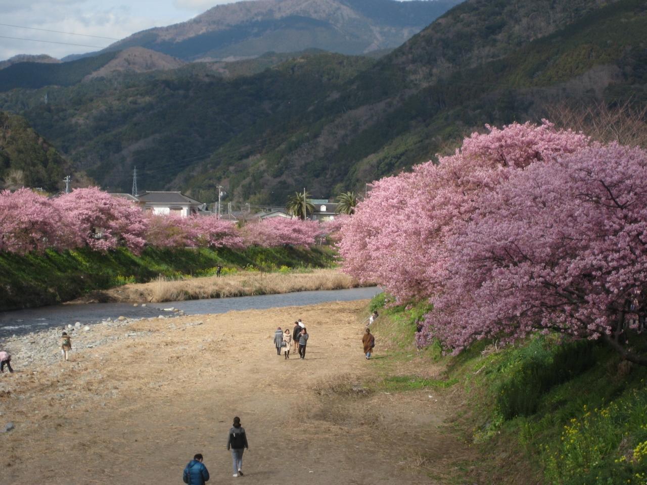 河津より観光客が少ないので写真を撮ったりのんびり花見をするならこっちのほうがいいかも。祭りとして楽しむなら河津かな。