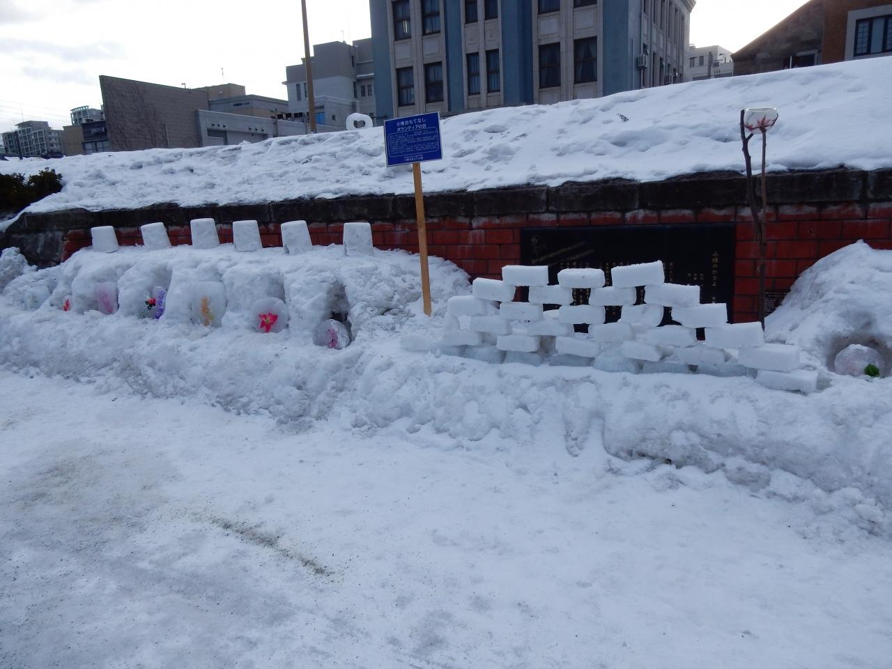 並べてあるのは、バケツに雪を入れて固めたものです。