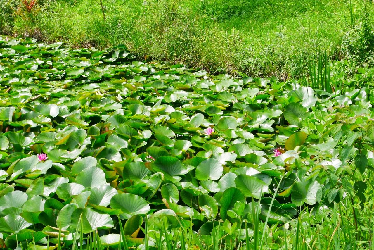 緑豊かな植物に囲まれた湖には、睡蓮が咲いていたり。