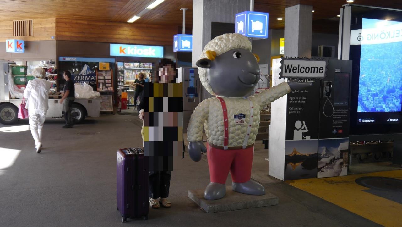 この旅行のハイライトで、緊張して前屈みになってる(笑)ツェルマット駅 駅