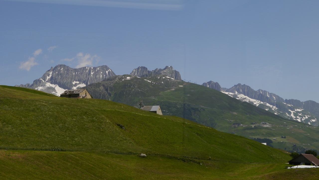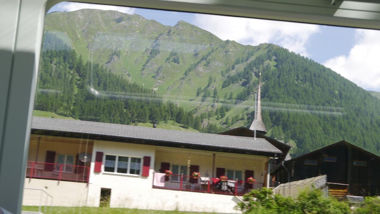 氷河特急と言っても、温暖化の影響かどうか氷河は後退して殆ど見られません。一番高いところのオーバーアルプ峠で少し見られたくらい。